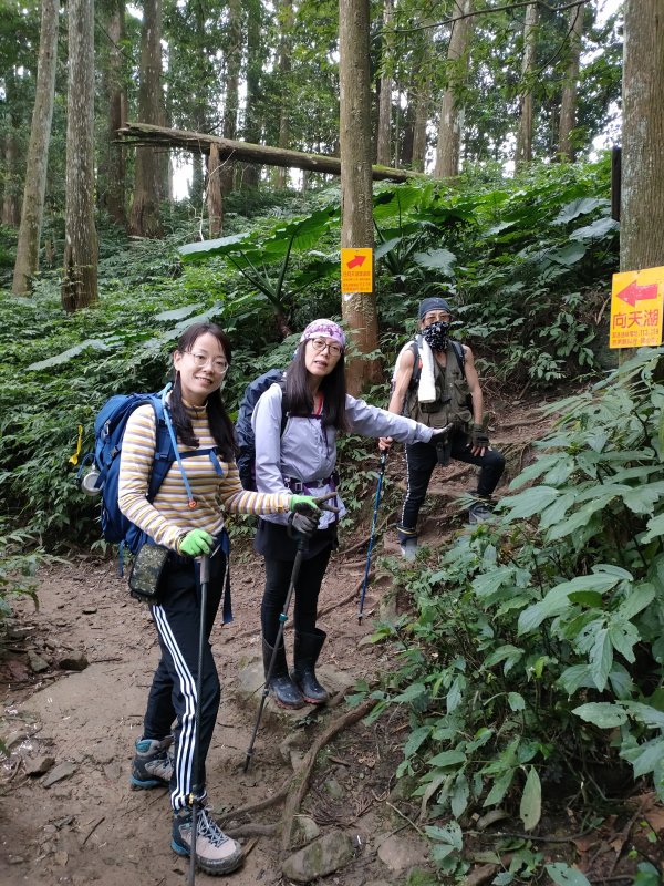一預計先登光天高山,再往向天湖山,由三角湖山下山,一開始走在柳杉林中,涼爽潮濕的泥土石路,長年不見陽光,又常常會霧氣繚繞,走起來格外溼滑,小心謹慎慢行,安全是維一的要務