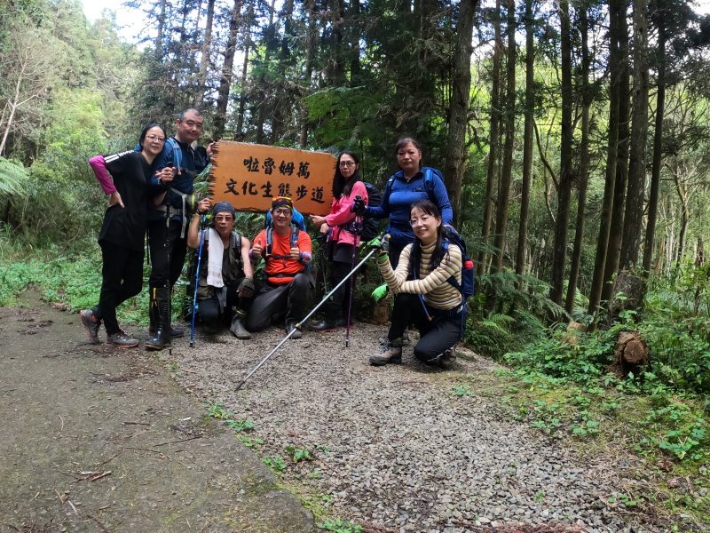 下山也是一路陡下,走在柳杉林中,舒爽涼快,空氣新鮮,約10多分鐘就來到了出口,啦魯姆萬生態步道上,在踢向天湖環湖步道回停車處取車