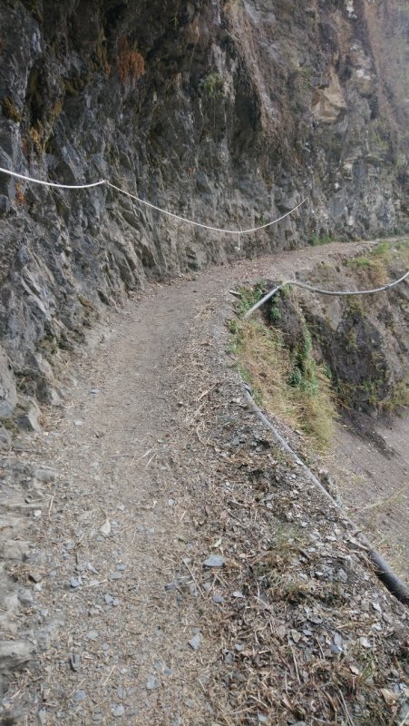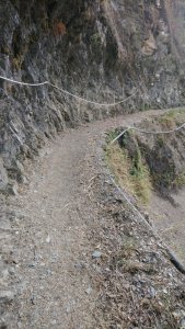 沒有鐵鍊路段也有鐵欄杆的設置,雖然有些路段有小碎石堆積小心行走並不危險