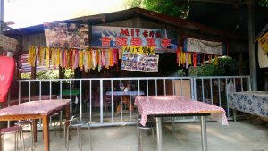 辛苦走了一連串的上坡,迎接遊客的MIT台灣誌古道愛玉亭,往上三聖宮可以上廁所,再往前行就沒有廁所了,很多的登山客都會在此休息
