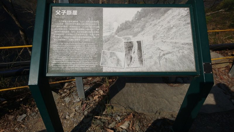 來到1.3k父子斷崖處,現今已見不到昔日父子斷崖之驚險了,只能從立牌中去想像