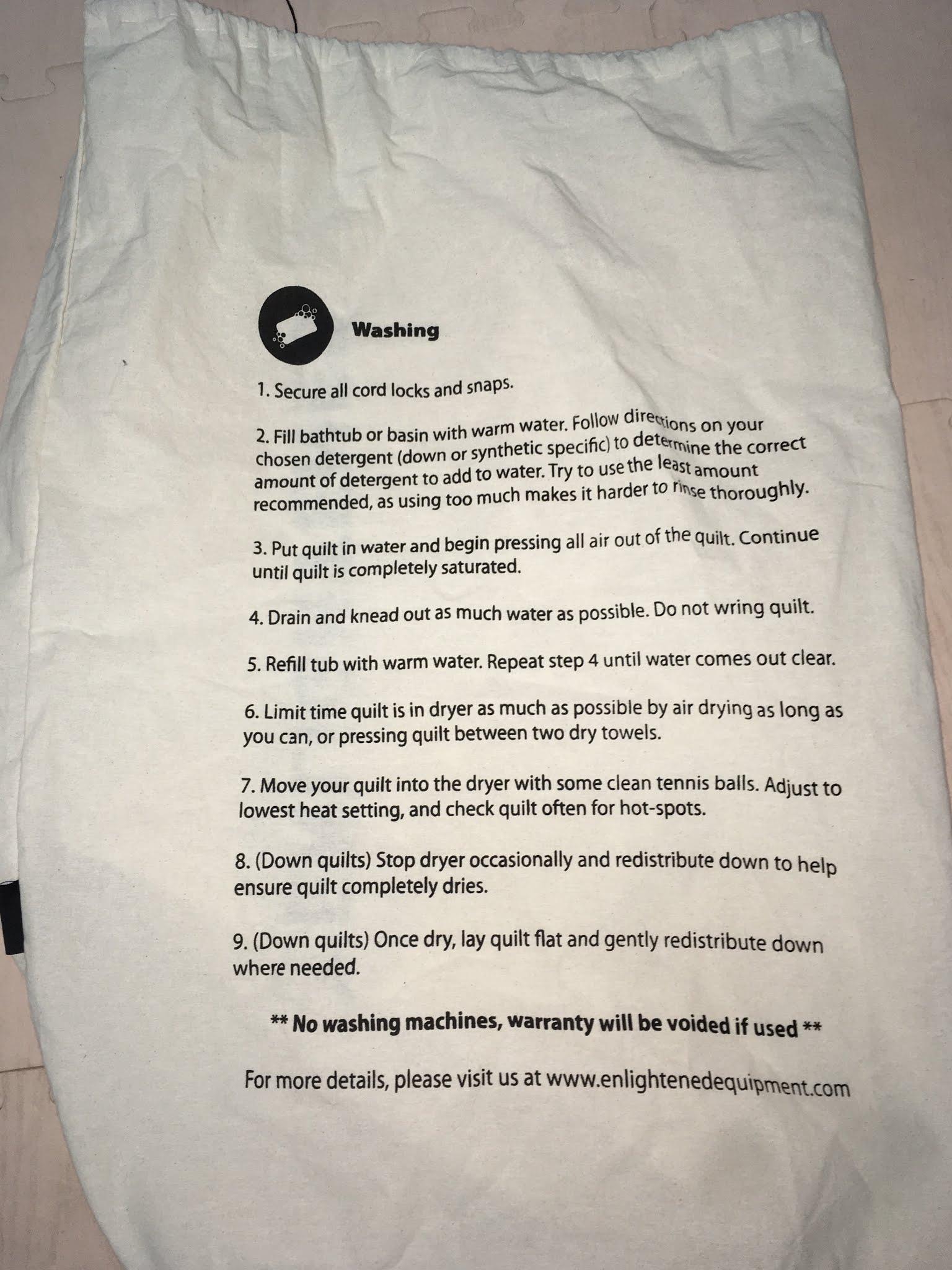 要介紹的是在國外有蠻多使用者的Enlighted Equipment (簡稱EE)的Revelation羽絨被,EE是一間位在美國明尼蘇達州的戶外用品公司,以羽絨相關製品為主,也有延伸出其他的戶外用品,詳情可見EE的官網,EE比較有名的是羽絨被,可以根據客戶需求去客製化羽絨被,不過客製化產品都要等上一到兩個月才會製作完成,在台灣想要買EE的羽絨被就要等上更久,我在去年感恩節的時候下單,製作時間大約是兩個月,等待期間EE只有在產品開始製作、產品製作完成時會有e-mail通知,其餘時候就是只能等,也沒辦法知道預計的製作和完成日期,產品完成之後會用USPS寄送,USPS最為人詬病的就是東西會寄丟,而且一旦寄丟就很難找回,另外USPS的動作很慢很慢,我的羽絨被從寄出到收件總共花了兩個星期,之後再花一個星期運回台灣,到農曆年過年之前才收到,所以要買EE的產品就要有漫長等待的心理準備。如果不想等待的話有非客製化的選擇,價格跟客製化的相同,雖說是非客製化但是也有保暖度、長寬和表布顏色可以選擇,沒有特殊需求也可以選擇非客製化的產品,但是根據官方表示,非客製化的產品外殼是在中國製造,填絨等工作是在美國進行,而客製化則是全部在美國製造,因為無法確認兩者個差異,所以雖然我沒有特殊的需求,也還是選擇需要等待很久的客製化產品。