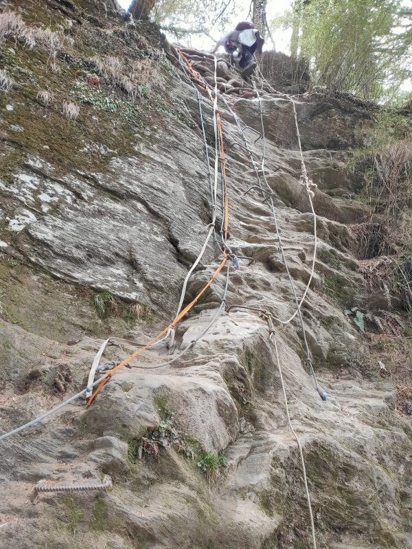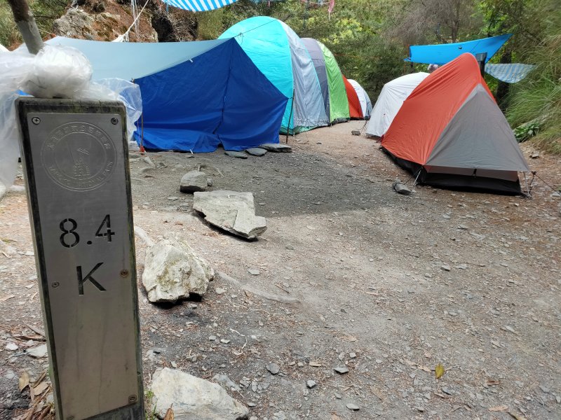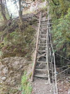 2km(其實陡上只有1.8km最後200m是稜線的平緩路徑)需要陡上爬升800m,相對的回程陡下也是!!!過程有看到別隊的山友就發生滑倒的情況,還好都只是小擦傷。 下山回程除了陡陡陡的下切2km困難路徑走完後,是還要再走8.4km!!! 一日單攻往返需走20.8 km
