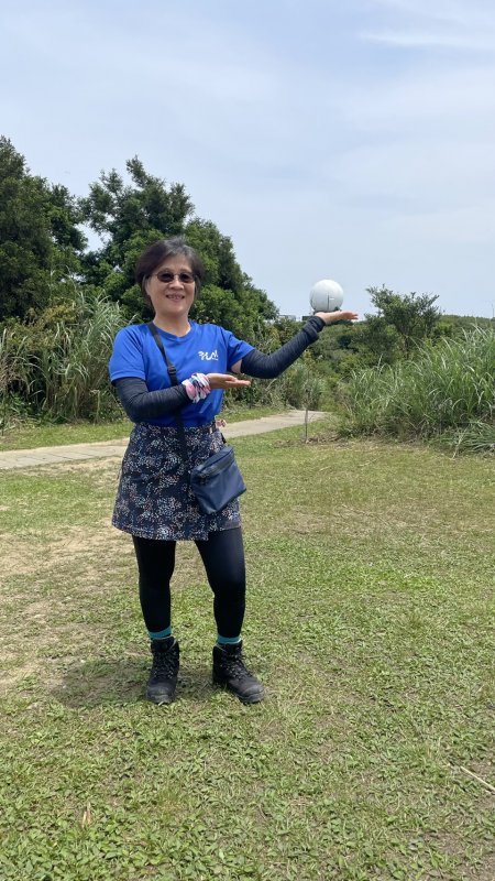 繼續前進路經涼亭看到氣象台,可以卸下背包也玩玩手捧小白球拍拍樂,此處是360度的山海景觀台,別忘環繞拍景. 要摸三角點需往前再走約300公尺,有小岔路往右上,