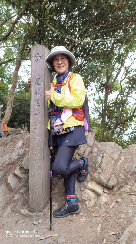 先繞至屋我尾山北峰,跟著湊熱鬧與三角點合拍,其實我沒有很熱衷,然而山友說拍拍阿,不要可以刪掉,但想要沒有就慘了,真的耶!有刪掉的機會總比沒有好,必竟記憶也是要被提醒的.