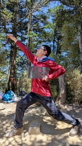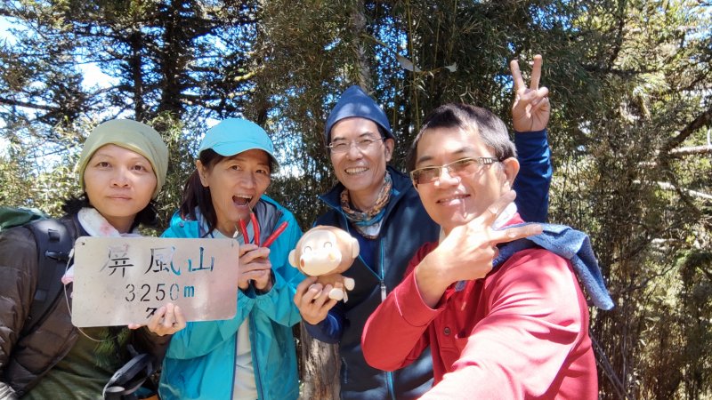 (小確幸),過了松針營地接著是要再次過溪(第三次),第一/三次過溪只要有濾水壺的都很容易取水,接著就是一直數著編號牌看到99就是只差臨門一腳嘍(山頂編號100)到山頂雖是陡上將近1400m但能造訪這大辣的屏風山登頂當下並不感覺有硬抖,心裡還想著這比桃山還好爬,開始下山開始腳不斷的煞車,