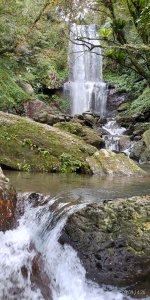 續往內前進,發現新天地,水量頗大的瀑布,負離子大噴發,當然要好好地在此多呆一會兒,大伙在此午餐,若不是偶飄細雨,還想鋪張墊子午睡片刻,芬多精、負離子吸飽吸滿,解疫後再來視察一下
