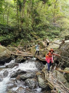 下到溪谷就這小段比較好玩,溪水清澈,水聲潺潺,幾根樹幹架起的橋樑,很原始跟森林很搭,走起來看似幾分驚險,然而增添不少樂趣