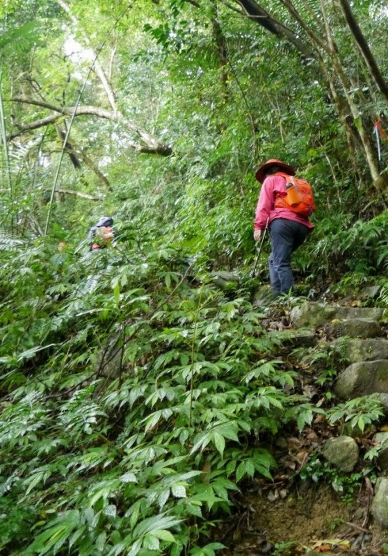 向前行進雖然山徑不寬但路十分明確也無高低泥石,兩旁樹林蔥蘢翠綠,可能是非假日所以只有我們一隊包場,可以慢行,享受森林浴