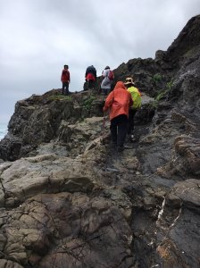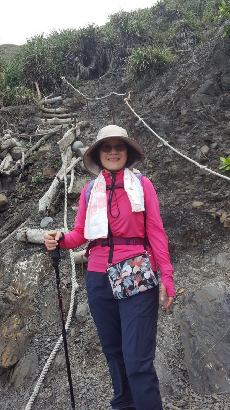 走過海灘要攀越小山丘十分原始的山路有繩可拉減輕了不穩木階的危險,爬了這段雖然滿身大汗,然而回頭望望那美麗的海岸,綻藍的海水,白透透的浪花,瞬間情緒澎湃,內心吶喊著“FORMOSA",太美了