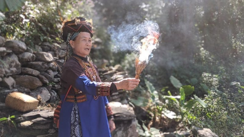 大伙跳下小車,巫師擺上祭拜品檳榔、酒,燒起香,念念有詞,我聽不懂,但可以猜想到,應該是上報先靈,有客來訪或有打擾或有冒犯,請多包涵並保佑來客一路平安順遂,禮成後大家由嚮導引領進入部落