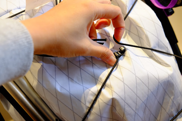 ↑頂蓋上方也有束繩,穿穿脫脫的衣服綁在上面可以不用一一打開束口方便很多