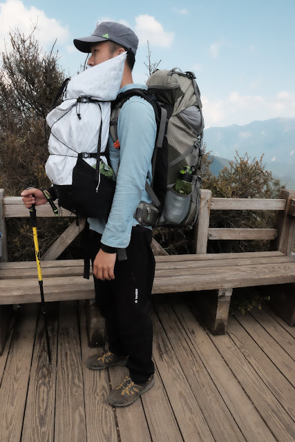 在剛開始選擇THREE這三種款式的時候我也非常的猶豫,不過因為我也沒有爬太多大山,並沒有豐富的經驗去想像自己的需求,只是直覺要選擇一個跟我的Granite Gear差異較大的包款來體驗兩者的差異。Granite Gear Blaze Ac 60 Pack外面口袋的開口類似Yamatomitch THREE Standard,所以我這次想要試試看ZIP的款式,也存著僥倖的心態、可能可以比較放心小雨時不需要套上惱人的背包套這個裝備(不論多帥的包瞬間弱掉)。