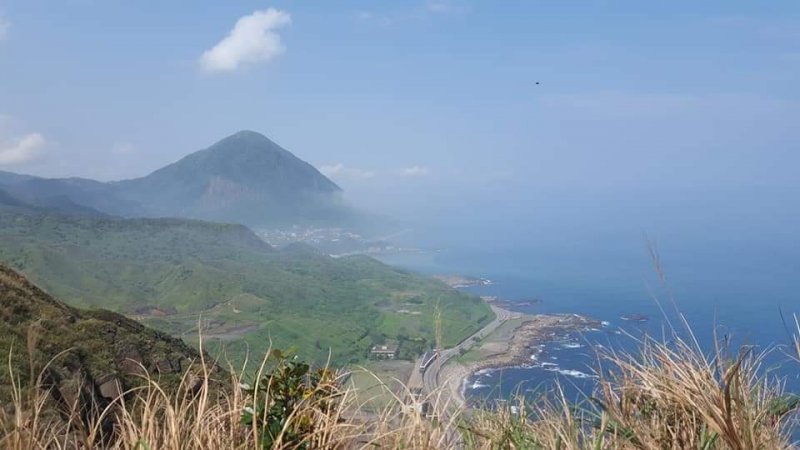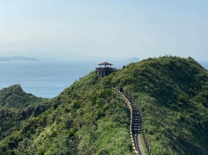 眺望遠處有基隆嶼、基隆山、茶壺山、半平山、草山,翠綠的山色,峰峰相連,有海有山盡入眼簾,如果不是太熱,要好好做下,慢慢品味