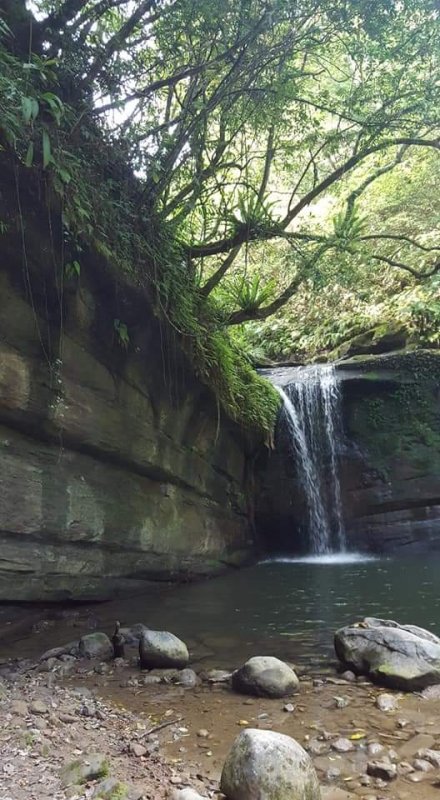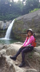 5/4/2020 跟著顏老師走訪平溪三瀑布,9:00於三貂嶺火車站集合,過了地下道沿著鐵軌走,沿路就有些溪谷風光壺穴地質可看,我覺得乘火車猴硐到三貂嶺左側的景色很迷人,溪水清徹,岸邊綠意,台北近郊就有此鄉村恬靜的環境,真的很幸福. 看到碩仁國小,內有廁所可用,並無學生在上課了,循著階梯步道走第一個碰
