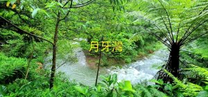 途徑中也有幾個景色,如月牙灣,連續幾日的大雨,看這溪水奔騰繞灣,其實我內心此刻也是奔騰翻攪著,有個四聲的字,全身濕答答的,當前美景也無心欣賞