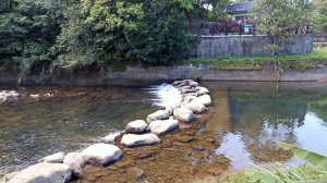 大小石頭有序堆砌而成的攔水壩.別有一番風情.