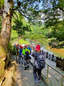 約1410到達虎豹潭古道.溪畔山景優美.風光明媚.一行人在此駐足約30分.