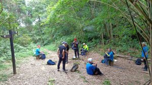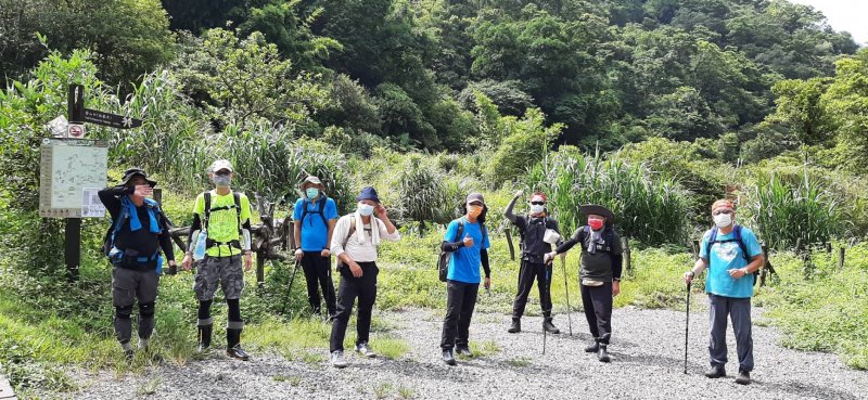 在風口鞍部前15分稍作休息.當日艷陽天無風.好友們個個爆汗.但步道規劃不錯就是石頭青苔多.感謝無名志工們的手作步道.