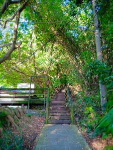 不要走柏油路,一旁的階梯走上去就對了