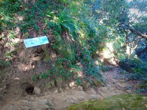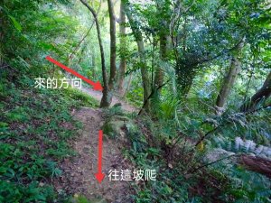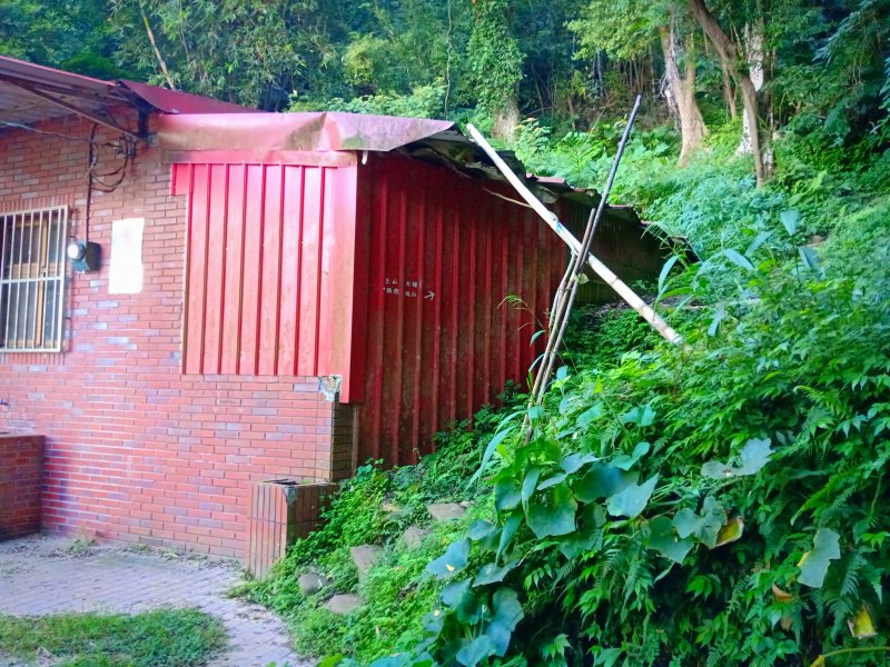 沒多久看到紅色小屋,有張不明顯的指示牌-往福德坑山。要從房子右側往上爬