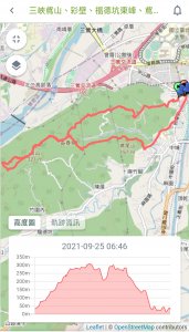 鳶尾山155m,下山後還要走一段柏油路,經過三峽老街回到區公所,區公所旁有廁所可用