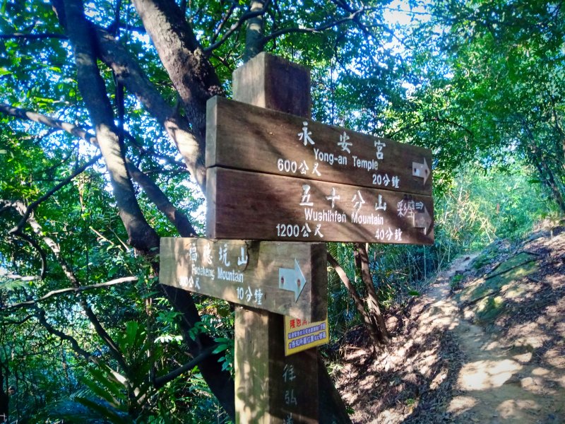 指示牌,往永安宮/五十分山,就是往鳶山彩壁