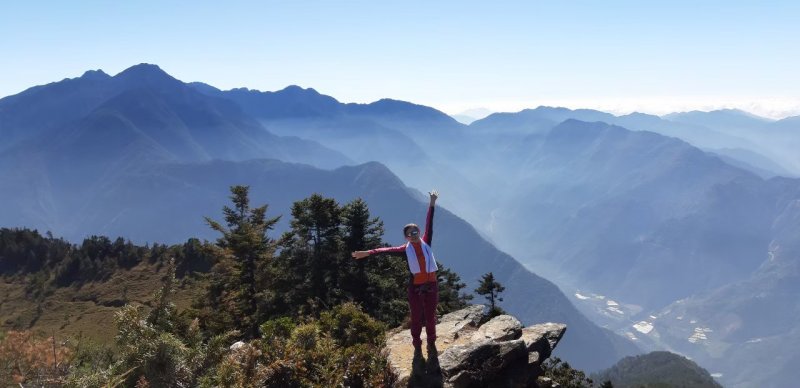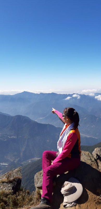 三角點必拍,視野極佳,遠山稜線美極了可惜不知山頭名稱,郡大北峰到郡大三角點1.6k,從登山口到郡大山來回約8公里。