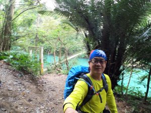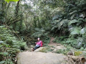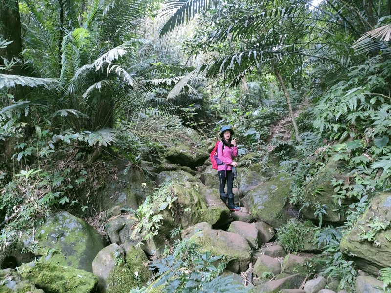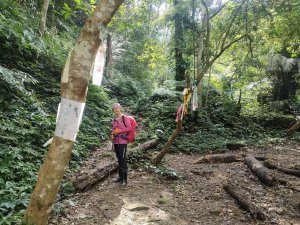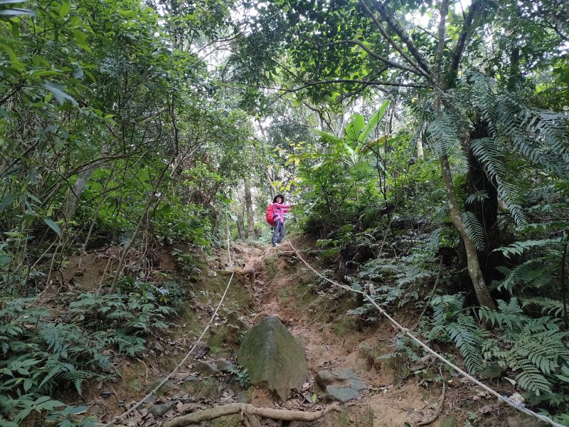 從好漢坡一路陡上,還好延路有拉繩輔助,登山土徑粉濕滑,可能是前兩天有下雨,或長年陽光無法照射地面,所以潮濕滑溜難行,一步一腳印,小心拉繩緩上