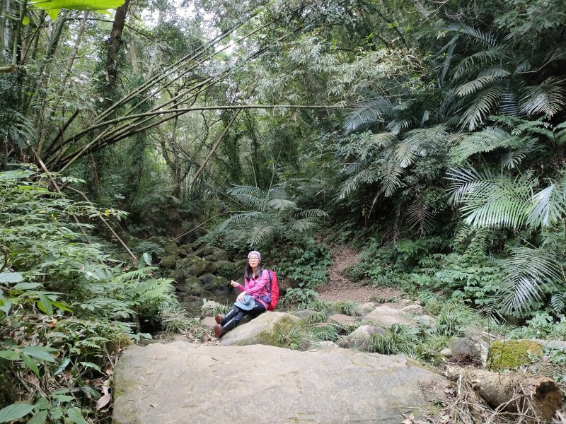 一路緩下走小竹坑步道,沿路延溪邊山徑而下,溪水潺潺而流,樹頂鳥巢蕨茂榮而生,大板根突地拔起,巨石青苔橫生,一路景色優美多變,林中鳥鳴伴行,涼風徐徐輕拂,走起來很舒適愉快的步道