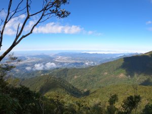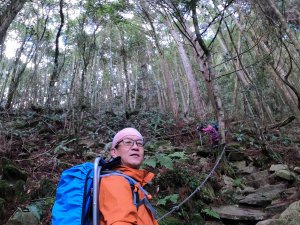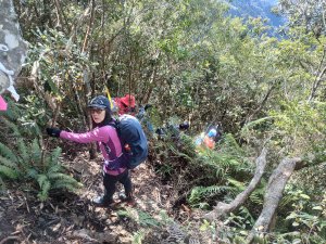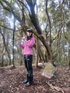 從觀景台一路陡下,登上笛吹山1714m,山友們找了一枝乾材,大家合照時都拿起作吹笛樣,吹笛在笛吹山,真是應景有趣,合影留念後一路陡上回觀景台,開爐火,煮牛肉湯,煎雞排,飽餐一頓,經過笛吹山的陡上陡下操課,真的餓到前胸貼後背了,這頓午餐,吃的特別的香,大休一個多小時後才整裝續行