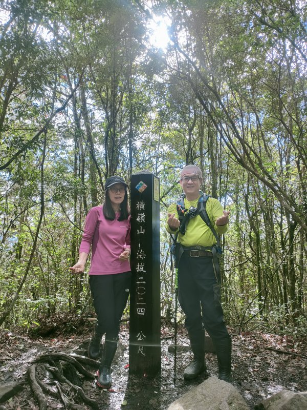 苦瓜秘境團全員到齊,在橫嶺山三角點合影,下重裝,喝熱茶,吃行動糧,小休片刻,人多就是熱鬧,說笑嘻鬧之聲,不絕於耳,讓爬山健行,不在苦悶無聊,更有趣味了