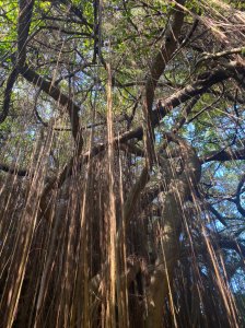 一簾幽夢美景,錦屏藤由老樹上垂下千絲萬絲