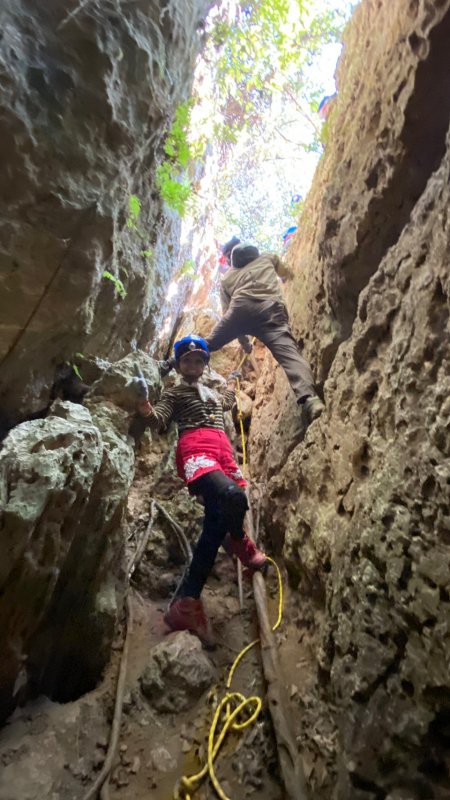 在洞內探索一番要攀、爬、鑽、縮,使出渾身解數,從光源處爬出,挑戰成功接著要往金瓜洞