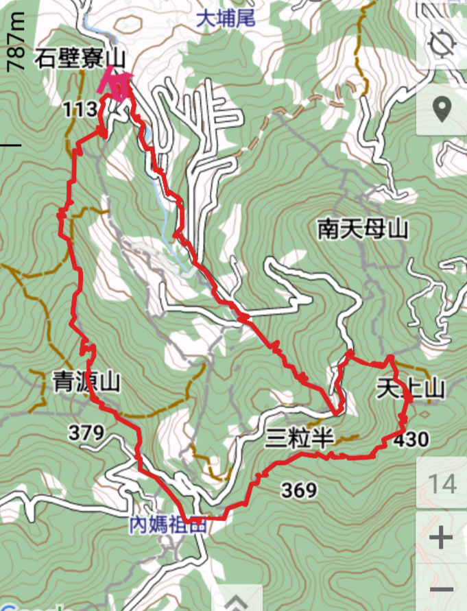 這一圈順時針O型路線, 慢走加拍照走了三小時, 距離約7km 高度落差約380m