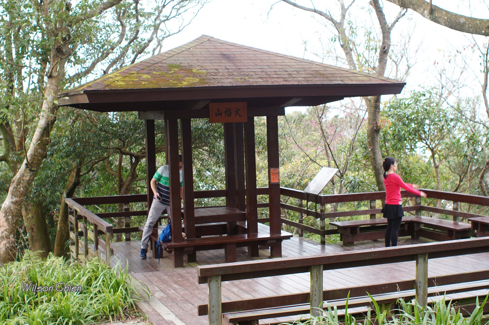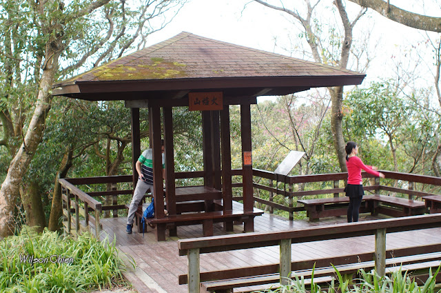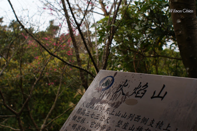 火焰山(H373m) 沒有基石, 但有木製觀景平台與涼亭, 涼亭上就掛著 "火焰山"