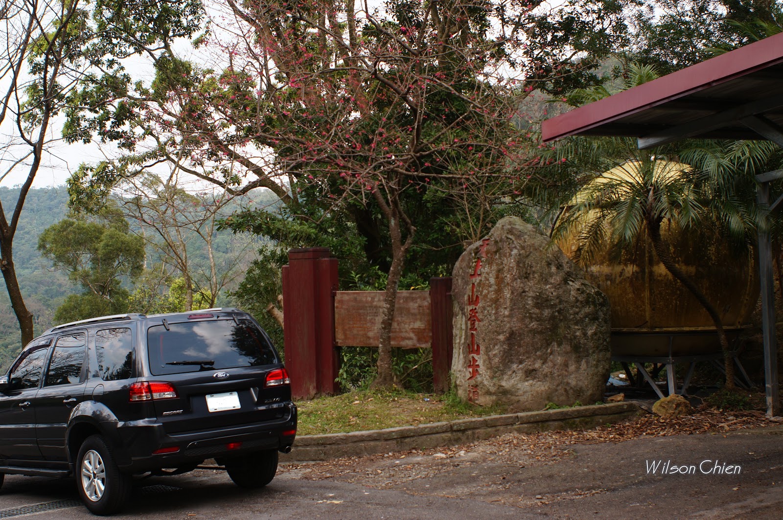 車停承天禪寺登山口旁, 走柏油路上爬經賞螢步道, 桐花公園後再上到天上山