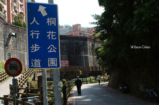 來到承天禪寺旁的攤販處, 取左邊這條上山路往桐花公園去