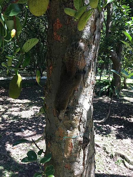 樹上的松鼠,很笨! 招手就神經兮兮的跑下來了,可見平常一定有遊客餵牠吃東西。