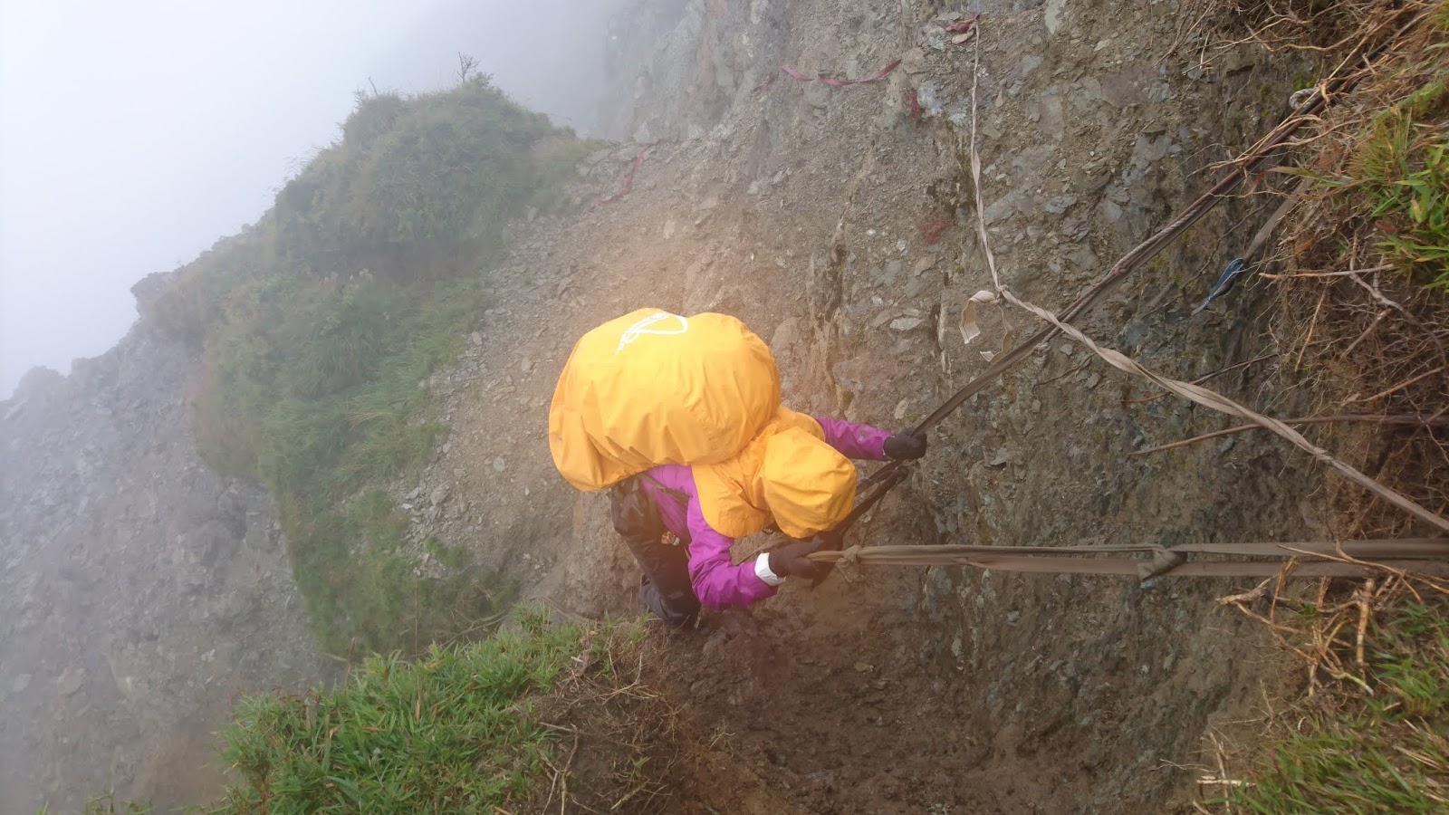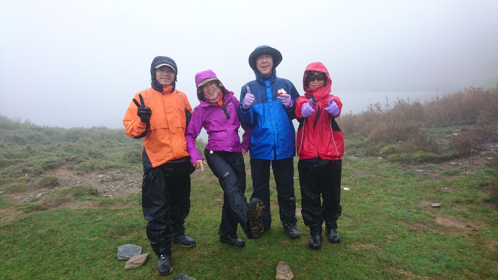 10月8日天氣還是不好,走沒多久凌美跟福哥提議撤退,國欽說要帶我們走,於是福哥凌美原路折返,我們其餘五人繼續前進,鋒面加上雨勢讓首次參與縱走行程的兩位女性吃足了苦頭,但也讓我見識到了他們超凡的毅力與韌性,行程雖苦卻也能苦中作樂,一路上相互扶持與鼓勵的畫面不斷上演,11點30分登上能高南峰,到達南峰南鞍營地已經13點30分,再加上已有其他隊伍都已搭好帳篷,看來已不夠再讓我們搭三頂,只好先拉起外帳擋一下雨勢隨便煮個泡麵吃,收拾好溼答答的裝備前往3159峰南鞍營地,強勁的風勢讓我們吋步難行,剛好看到一個避風處夠我們三頂帳篷,旁邊還有一處小水坑,是個理想的緊急宿營地,這時應該每個人的衣服褲子襪子都是濕的吧,幸好保命的保暖衣跟睡袋沒有濕,吃完晚餐早早休息吧。