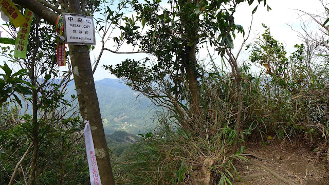 中央尖指示牌是這裡最有趣的地方之一,回程看到一個小990M,續行再到慈恩嶺、慈母峰叉路另一牌子標950M,總之這裡指標寫的距離看看就好,GPS沒電不然本想順便計一下距離,推估叉路這到中央尖就差不多是1K左右。