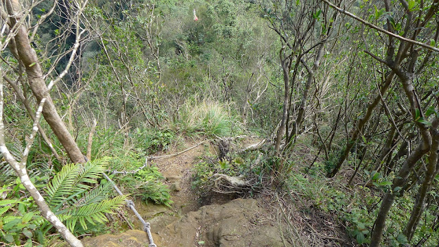 幸好這2段下完之後有一段平緩的下切,中途妙的是除了我撿不到的,路徑也沒在遇到天燈殘骸了。