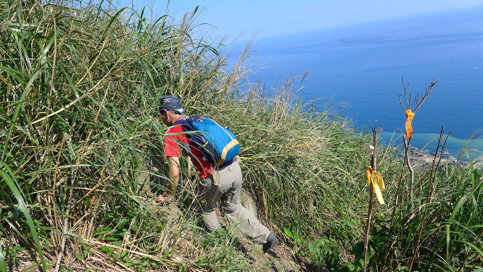 回到叉路取左往濂洞國小,一段超陡下芒草土坡,爬上來累,爬下去更累。