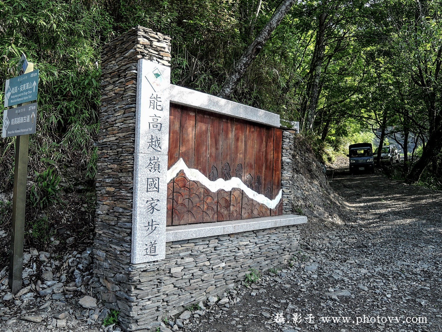 14:00出發點位於山莊右側的廁所旁有一前往能高主山的指標,這就是前去光被八表石碑的起點。