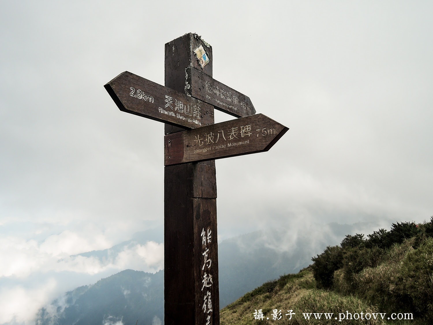 ↓而在路途中,可以看到有的路標木樁處會有一塊手機可通訊地點(只有中華與遠傳可通),經測試如突然雲層過厚或起濃霧會影響通訊。畢竟是在深山中,應急用可,但別想要打卡上網聊天,這兩天就告別低頭族好好用心看看周遭自然之美吧!!