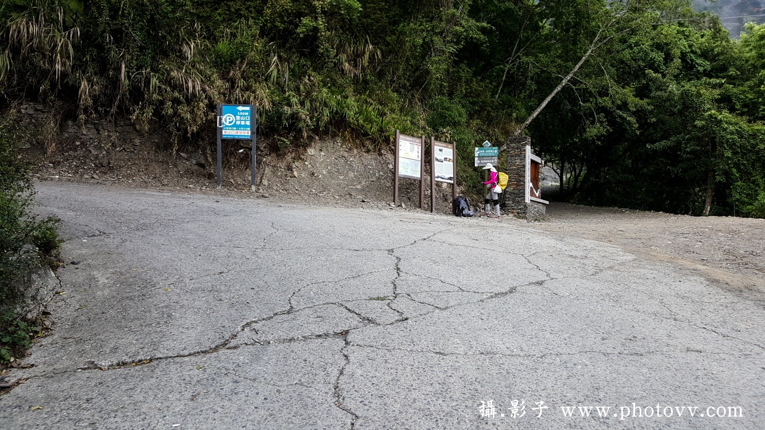 ↓開到看到這叉路恭喜抵達登山口啦,先左轉停好車整理裝備。由廬山溫泉住宿處開車到此花費40分鐘。
