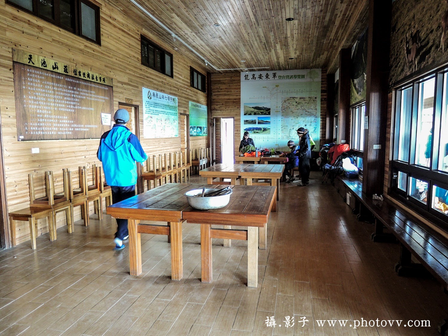 注意天池山莊整棟都是用檜木建造,所以入內需更換為拖鞋,登山鞋不能入內喔。