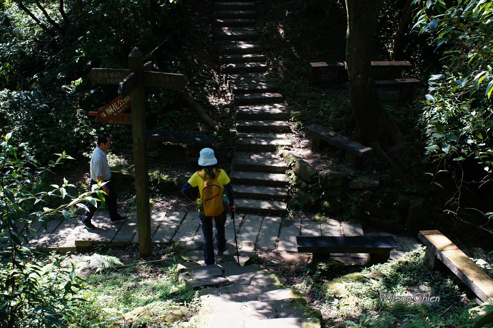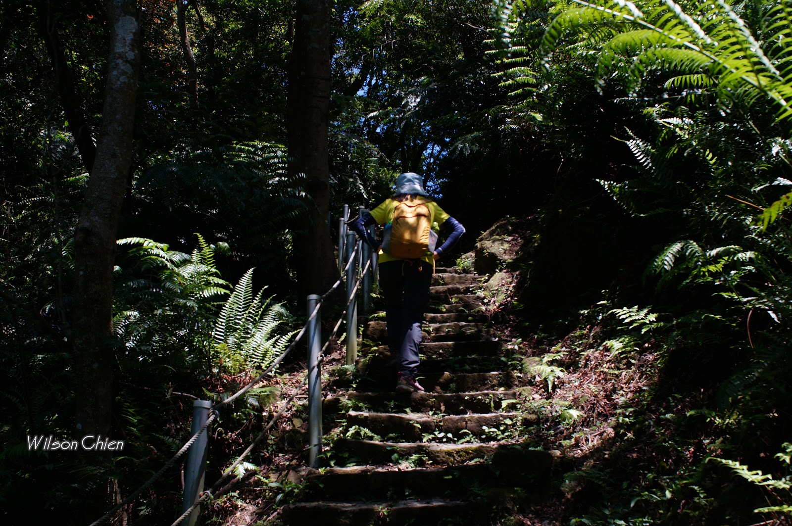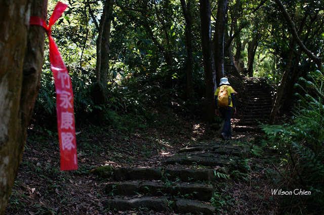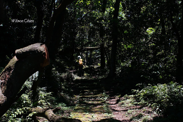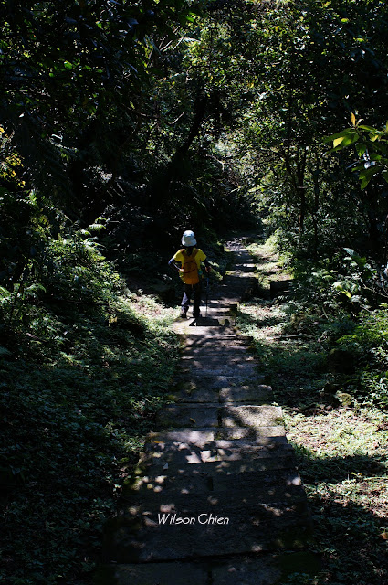 上爬雖滿頭大汗, 但山風徐徐很舒服, 要注意這石階滑滑的, 只好走邊邊