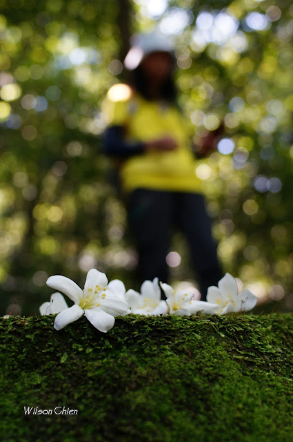 其實步道兩旁都有大顆桐花樹, 地上也有一些花但因前幾天的雨勢, 使得這些地上的桐花大多呈半透明狀了,