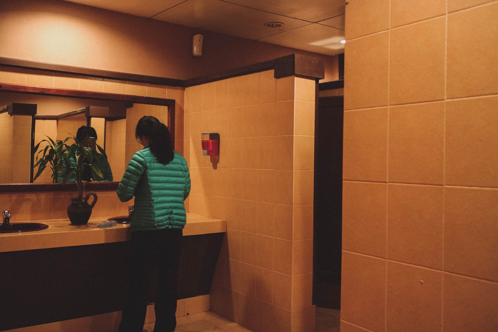 夜晚廁所空蕩蕩的,祺不敢一個人去廁所